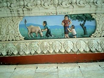 | Keywords: 0012โคไม่กิน.JPG โคไม่กินหญ้าอย่าข่ม ขา -- Illustrated Proverb If cow won't eat don't pull her horns Phra That Phanom chedi Amphoe That Phanom Nakhon Phanom Province northeastern Thailand 2004-06-21 Pawyi Lee Public domain Reliefs in Thailand Wat Phra Tat Phanom Reliefs of cattle Thai proverbs |