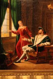 | Keywords: 006. François Ier montre à Marguerite de Navarre, sa sœur, les vers qu'il vient d'écrire sur une vitre avec son diamant by Fleury François Richard - détail DxO hdr.jpg Artwork creator Fleury François Richard détail de l'œuvre de 1804 par Fleury François Richard exposée au Musée des beaux arts de Lyon 1804 Oil on canvas size cm 78 66 Institution Musée Napoléon Thurgovie object history exhibition history 2014 L'invention du passé Histoires de cœur et d'épée en Europe 1802-1850 Institution Musée des Beaux-Arts de Lyon credit line place of creation own accession number 1906/7 n°541 PD-old-100 Uploaded with UploadWizard François Ier montre à Marguerite de Navarre sa sœur les vers qu'il vient d'écrire sur une vitre avec son diamant by Fleury François Richard Images by Otourly - MBALyon 2014 |