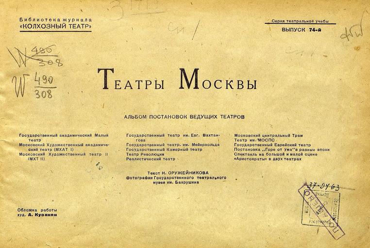 Keywords: РГБ: Театры Москвы [Текст] : Альбом постановок ведущих театров... / Текст Н. Оружейникова ; Фот. Гос. театрального музея им. Бахрушина ; Обл. работы худож. А. Кузанян. - Москва : изд-во тип. и офсет-печатня изд-ва &quot;Крест. газ.&quot;, [1936]. - Обл., 112 с. : ил.; 17х26 см. - (Библиотека журнала &quot;Колхозный театр&quot;. Серия театральной учебы; Вып. 74). <a href="http://dlib.rsl.ru/rsl01005000000/rsl01005311000/rsl01005311611/rsl01005311611.pdf" rel="nofollow">dlib.rsl.ru/rsl01005000000/rsl01005311000/rsl01005311611/...</a> 1936 rsl москва russianstatelibrary российскаягосударственнаябиблиотека ргб historyofrussiantheatre историясоветскоготеатра