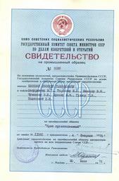 | Keywords: Свидетельство 010002.jpg ru Свидетельство на п омышленный об азец 5526 «К ан г узоподъемный» 1975 год СССР en Industrial Design Certificate No 5526 1975 USSR 2014-09-10 01 51 41 own Dergalev PD-RU-exempt Insignia cc-by-sa-4 0 Industrial design certificates |