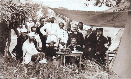| Keywords: 0110 Князь В. Черкасский, руководитель гражданского управления в освобожденных русскими землях, со своими соратниками в полевом л.jpg en Count V Cherkasskiy head of civilian governance in the lands liberated by Russians with his compatriots in a field camp near the village of Gorna Studena Го на Студена 1877-10 Forgotten photos of Russo-Turkish War author other versions PD-old-70-1923 Russo-Turkish War 1877 1878 | ||||