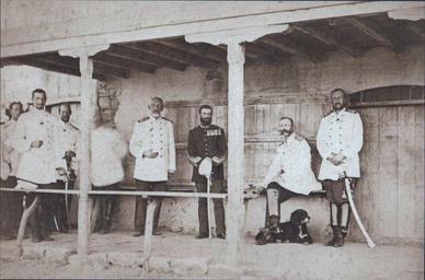 | Keywords: 0170 Его Величество Государь Император Александр II, великий князь Николай Николаевич и Кароль I, князь Румынии, с офицерами штаба в.jpg Grand Prince Nikolai Nikolayevich and Karol I the Count of Romania with officers of the staff in Gorna Studena Го ной Студене 1877-10 Forgotten photos of Russo-Turkish War author other versions PD-old-70-1923 Russo-Turkish War 1877 1878 | ||||