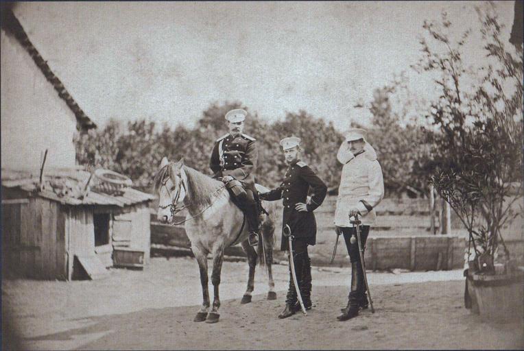 | Keywords: 0180 Великий князь Сергей Александрович, принц Александр Баттенберг и полковник Скариалин в селе Пордим, сентябрь 1877.jpg Grand Prince Sergei Aleksandrovich prince Alexander Battenberg and colonel Skarialin in the village of Pordim По дим 1877-09 Forgotten photos of Russo-Turkish War author other versions PD-old-70-1923 Russo-Turkish War 1877 1878 | ||||