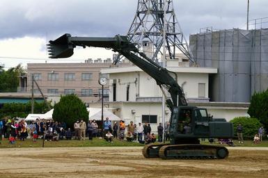 Keywords: 掩体掘削機01.jpg ja アームを旋回させる掩体掘削機 own work Trans5885 2013-04-07 Military engineering vehicles of the JGSDF Excavators in Japan