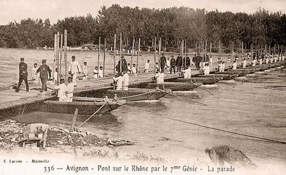 Keywords: 01 Avignon Pont 7e génie.jpg fr Parade du 7e génie sur le Rhône 2011-08-01 Scan old postcard E Lacour Marseille PD-old Uploaded with UploadWizard Military history of Avignon Old postcard of Rhône in Avignon