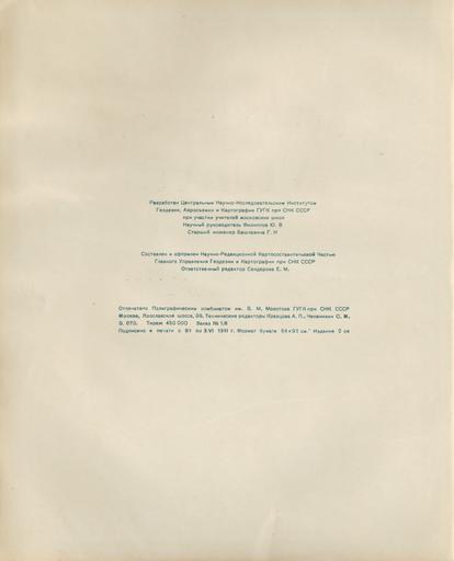 | Keywords: 01 b (выходные данные).jpg ru Геог афический атлас для 5-го и 6-го классов с едней школы 1941 Геог афический атлас для 5-го и 6-го классов с едней школы 1941 Главное Уп авление Геодезии и Ка тог афии п и С К СССР Описание Раз аботан Цент альным аучно-Исследовательским Институтом Геодезии Аэ осъемки и Ка тог афии ГУГК п и С К СССР п и участии учителей московских школ Составлен и офо млен аучно-Редакционной Ка тосоставительской Частью Главного Уп авления Геодезии и Ка тог афии п и С К СССР Подписано к печати с 9/I по 3/VI 1941 г Custom license marker 2012 10 06 PD-old Geographical Atlas for the 5-6 grades of secondary school 1941 Uploaded with UploadWizard |