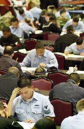 | Keywords: 020117-N-5961C-003 2002 Chiefs Exam.jpg en 020117-N-5961C-003 Naval Air Facility Atsugi Japan Jan 17 2002 -- Mess Specialist 1st Class Espeleta Lower Left a native of Bataan Republic of the Philippines participates in the annual exam for selection consideration to Chief Petty Officer The exam containes 50 additional questions than in previous years 100 questions pertain to professional development and 100 questions address military leadership Each sailor has three hours to complete the exam U S Navy photo by Chief Photographer's Mate Spike Call RELEASED 2002-01-17 020117-N-5961C-003 Navy http //www navy mil/view_image asp id 600 U S Navy photo by Chief Photographer's Mate Spike Call PD-USGov-Military-Navy Images from US Navy location Atsugi Japan January 2002 photographs Military people in 2002 January 2002 in Japan Photographs of sitting men 17 January |