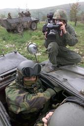 | Keywords: 020602-F-EF201-019 James Monk, a Videographer assigned to the 30th Communications Squadron (CS), uses a digital video camera.JPEG en US Air Force USAF Technical Sergeant TSGT James Monk a Videographer assigned to the 30th Communications Squadron CS uses a digital video camera to document Portuguese Army Soldiers aboard a Chaimite V-200 Armored Personnel Carrier on the Glamoc live-fire range while participating in Exercise IBERIAN RESOLVE at Camp Butmir Bosnia and Herzegovina between 2002-05-20 2002-06-02 http //www defenseimagery mil/imagery html guid 52bad9ca0611f3bda0f70c72eecd967b4935e2c2 Master Sgt Scott Wagers U S Air Force Information_field http //defenseimagery mil/learning/howto/virin html VIRIN 020602-F-EF201-019 According to VIRIN this image would have been created 2 June 2002; another source<ref name trilhos >http //www exercito pt/sites/2BIMec-BrigMec/Publicacoes/Documents/Trilhos_02_n4 1 pdf TRILHOS Publicação do 2ºBIMec / BMI / SFOR II - número 4 - Maio 2002 - Mensal Pág 8 </ref> asserts that between 20 and 25 May 2002 Segundo VIRIN esta imagem haveria sido criada 2 de Junho de 2002; uma outra fonte<ref name trilhos /> assevera que entre 20 e 25 de Maio de 2002 Reflist PD-USGov Men with cameras Iberian Resolve Military people of Portugal 30th Space Communications Squadron Uploaded with UploadWizard May 2002 photographs Bravia Chaimite |