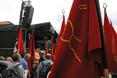 Keywords: trade union vejle denmark tradeunion 3f solidarity red flag labourmovement social dumping socialdumping wages outdoor Blokade af Resteaurant Vejledgården 2012 Blokade af Resteaurant Vejledgården 2012