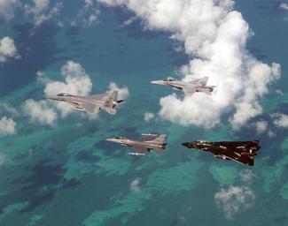 | Keywords: aerial air force airforce aircraft cope snapper copesnapper eagle falcom falcon key west keywest tomcat key west nas keywestnas florida united states unitedstates outdoor cloud sport water swim An Air Force F-15 and F-16 fly in formation with a Navy F-14 and F-18 Oct. 23, 2002, over East Coast waters during exercise Cope Snapper 02 at Key West Naval Air Station Key West, Fla. Cope Snapper exercise 02 is a multi-aircraft exercise that engages dissimilar air combat training with on fighter data link and joint operations with the Navy. The members involved in Cope Snapper consist of the 159 Fighter Wing's, Louisiana F-15 fighters, the 169 AGS McEntire Air National Guard's, maintenance crew, South Carolina, F-16 fighter jets, and the Navy's F-18s and F-14 fighter jets. (U.S. Air Force photo by Staff Sgt. Shane A. Cuomo) (Released).. An Air Force F-15 and F-16 fly in formation with a Navy F-14 and F-18 Oct. 23, 2002, over East Coast waters during exercise Cope Snapper 02 at Key West Naval Air Station Key West, Fla. Cope Snapper exercise 02 is a multi-aircraft exercise that engages dissimilar air combat training with on fighter data link and joint operations with the Navy. The members involved in Cope Snapper consist of the 159 Fighter Wing's, Louisiana F-15 fighters, the 169 AGS McEntire Air National Guard's, maintenance crew, South Carolina, F-16 fighter jets, and the Navy's F-18s and F-14 fighter jets. (U.S. Air Force photo by Staff Sgt. Shane A. Cuomo) (Released).. An Air Force F-15 and F-16 fly in formation with a Navy F-14 and F-18 Oct. 23, 2002, over East Coast waters during exercise Cope Snapper 02 at Key West Naval Air Station Key West, Fla. Cope Snapper exercise 02 is a multi-aircraft exercise that engages dissimilar air combat training with on fighter data link and joint operations with the Navy. The members involved in Cope Snapper consist of the 159 Fighter Wing's, Louisiana F-15 fighters, the 169 AGS McEntire Air National Guard's, maintenance crew, South Carolina, F-16 fighter jets, and the Navy's F-18s and F-14 fighter jets. (U.S. Air Force photo by Staff Sgt. Shane A. Cuomo) (Released).. unitedstates eagle florida aircraft aerial falcon keywest airforce falcom tomcat copesnapper keywestnas |