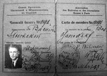 Keywords: Василий Яновский 02.jpg ru Удостове ение Союза усских писателей и жу налистов в Па иже 1933 Василий Яновский - Поля Елисейские Книга памяти Яновский other versions cc-zero Uploaded with UploadWizard Vasily Semenovich Janowski