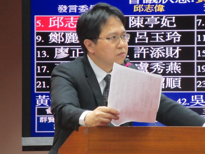 Keywords: 文化部長龍應台和陸委會主委王郁琦接受質詢 02.jpg zh-tw 台灣 野黨民 黨立委邱志偉(美 之音張永泰拍 ) 2014-01-08 10 21 01 http //www voachinese com/a/reactions-on-cross-strait-media-meetingcontroversy-20140109/1826378 html 張永泰 other versions Custom license marker 2016 08 06 PD-USGov-VOA 8th Legislative Yuan January 2014 Chiu Chih-wei |