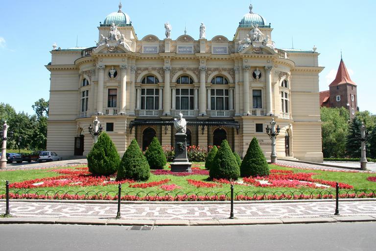 Keywords: 03742Kraków.JPG Kraków Poland Own 2007-07 Rj1979 Juliusz Słowacki Theatre Eclectic architecture in Poland Aleksander Fredro Monument in Kraków