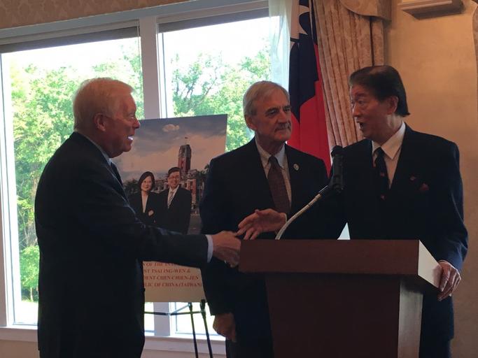 | Keywords: 台灣駐美代表處在雙橡園舉行慶祝蔡英文總統就職酒會 03.jpg zh-tw 駐美代表沈呂巡與美 台協 執行理事唐若文 美 之音鐘辰芳拍 2016-05-20 http //www voachinese com/a/president-taiwan-reception-gallery-dc-20160519/3337897 html 鐘辰芳 other versions Custom license marker 2016 10 05 PD-USGov-VOA Tsai Ing-wen 2016 presidential inauguration |