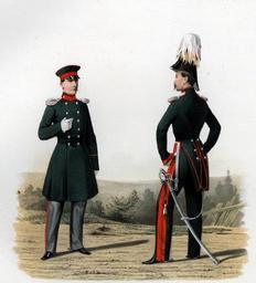 | Keywords: 03 Life guards Horse-Jager regiment.jpg ru Лейб-Гва дии Конно-Еге ьский полк 1817-1829 Обе -Офице ы Сю тук Виц-мунди ru Альбом цветных литог афий «Изоб ажение мунди ов Лейб-гва дии Конно-Еге ского полка и Лейб-гва дии Д агунского полка» 1902 Author PD-old-100 PD-RusEmpire Image of uniforms of Life guards Horse-Jager regiment and Life guards Dragoon regiment |