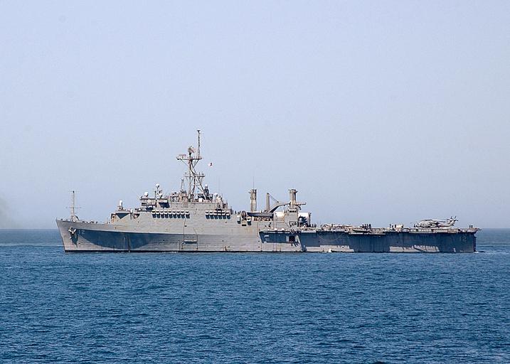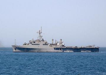 NORTH ARABIAN GULF (June 27, 2004) -- USS Shreveport (LPD 12), an amphibious ship operates in the North Arabian Gulf June 27. The ship sends three hot meals a day to more than 70 Sailors working with Iraqi security force to enhance security on Iraq's Khawr Al Amaya and Al Basra Oil Terminals. Official U.S. Navy photo by Journalist 2nd Class Jason Trevett. lpd12 ussshrevport |
