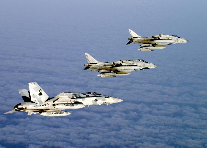 Keywords: 040712-N-3799S-008.jpg en Atlantic Ocean July 10 2004 - Above the clouds over the Atlantic Ocean an F/A-18C Hornet assigned to the Sidewinders of Strike Fighter Squadron Eight Six VFA-86 flies in formation with two Italian AV-8B Harrier II+ assigned to the Italian Navy aircraft carrier ITS Giuseppi Garabaldi C 551 after conducting Dissimilar Air Combat Training DACT The aircraft are part of Majestic Eagle a multinational exercise being conducted off the coast of Morocco The exercise demonstrates the combined force capabilities and quick response times of the participating naval air undersea and surface warfare groups Countries involved in the U S -led exercise include the United Kingdom Morocco France Italy Portugal Spain and Turkey Truman's participation in Majestic Eagle is part of her scheduled deployment supporting the Navy's new fleet response plan FRP Summer Pulse 2004 the simultaneous deployment of seven carrier strike groups CSGs demonstrating the ability of the Navy to provide credible combat across the globe in five theaters with other U S allied and coalition military forces U S Navy photo by Lt Perry Soloman RELEASED http //www news navy mil/view_single asp id 16226 2004-07-10 U S Navy photo by Lt Perry Soloman PD-USN 1-11 aircraft Giuseppe Garibaldi C 551 F/A-18C Hornet in flight Strike Fighter Squadron 86 United States Navy MEDSHARK-Majestic Eagle 2004 Summer Pulse 2004 1-13 aircraft |