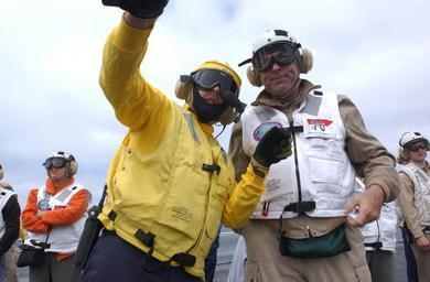 | Keywords: 040722-N-4776G-126.jpg 040722-N-4776G-126 Pacific Ocean July 22 2004 - Aviation Boatswain's Mate Handling 1st class Dennis D Parker explains the ships aircraft catapult system to actor Tom Selleck on the flight deck aboard USS Ronald Reagan's CVN 76 Tom Selleck was aboard Reagan to welcome the ship ™s crew to Naval Air Station North Island San Diego Calif Homeporting ceremonies for the Navy ™s newest and most technologically advanced aircraft carrier will host various dignitaries including Nancy Reagan members of the Congress state officials and various celebrities Reagan is commanded by Capt James A Symonds While in transit the ship visited the ports of Rio de Janeiro Brazil Valparaiso Chile and Callao Peru http //www news navy mil/view_single asp id 16478 2004-07-22 U S Navy photo by Photographer's Mate Airman Kathleen Gorby PD-USGov-Military-Navy Tom Selleck Aviation Boatswain's Mates Handlers Guests aboard USS Ronald Reagan CVN-76 |