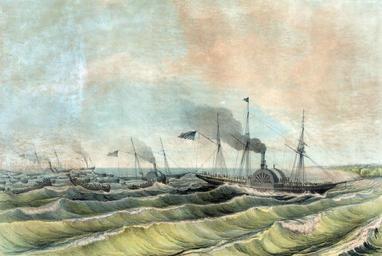 | Keywords: drawing The U.S. Navy ships, Scorpion, Spitfire, Vixen and Scourge; with 40 barges in tow, crossing the bar at the mouth of Tobasco River, Mexico. Courtesy of the Library of Congress, LC-DIG-pga-04099 The U.S. Navy ships, Scorpion, Spitfire, Vixen and Scourge; with 40 barges in tow, crossing the bar at the mouth of Tobasco River, Mexico. Courtesy of the Library of Congress, LC-DIG-pga-04099 |