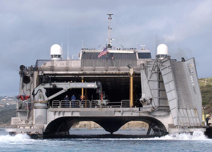 | Keywords: 060112-N-0780F-004.jpg en 060112-N-0780F-004 Souda Bay Crete Greece Jan 12 2006 - The U S Navy High-Speed Vessel HSV-2 Swift departs Souda Bay Crete following a brief port visit Swift is assigned to Commander Mine Warfare Command COMINEWARCOM Ingleside Texas and is operated by two rotating 42-person crews A Gold-crew based at Little Creek Va concentrates on expeditionary missions while a Blue-crew from Ingleside focuses on mine warfare At 321 feet Swift has a top speed of almost 50 knots The catamaran's aluminum hulls draw only about 11 feet of water making the ship ideal for missions in shallow coastal regions U S Navy photo by Mr Paul Farley RELEASED http //www navy mil/view_image asp id 31263 U S Navy photo by Mr Paul Farley RELEASED 2006-01-12 PD-USGov-Military-Navy Images by Alaniaris/PD uploads General views of HSV-2 Swift |