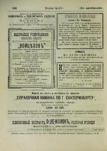| Keywords: Екатеринбургская неделя. 1887. № 27, второе прибавление