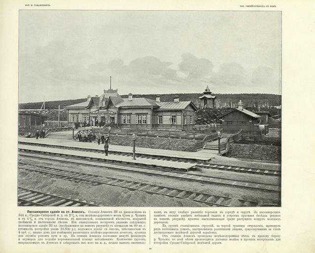 | Keywords: 069 Пассажирское здание на ст Ачинск.jpg en «Great Path - Views of Siberia and Great Siberian Railway» book 1899 ru Альбом «Великий путь Виды Сиби и и Великой сиби ской железной до оги» 1899 1899 flickr photos by I R Tomaskiewicz comments by V A I-v Custom license marker 2014 04 08 PD-RusEmpire PD-old Great Path - Views of Siberia and Great Siberian Railway Uploaded with UploadWizard | ||||