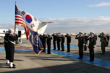 | Keywords: 071119-N-1113S-001.jpg Vice Adm Doug Crowder Vice Adm Ahn Kee-seok sideboys and members of U S 7th Fleet ™s Marine Fleet Anti-terrorism Security Team salute the colors on the flight line of Naval Air Facility Atsugi Japan Ahn Commander-in-Chief Republic of Korea Fleet flew into Atsugi to meet Crowder the commander of the 7th Fleet as part of a several-day visit to further relations between the U S and Korean navies http //www c7f navy mil/news/2007/november/071119-N-1113S-001 jpg U S NAVAL AIR FACILITY ATSUGI Japan Nov 19 2007 Mass Communication Specialist 2nd Class Matthew Schwarz PD-USGov-Military-Navy Color guards of the United States Navy Fleet Antiterrorism Security Team Military people with flags People of the Republic of Korea Navy People of the United States Navy Photographs of multiple national flags People with flags of the United States Salutes to flags Photographs of standing men Sailor suits William Douglas Crowder |