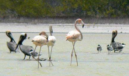 | Keywords: 07-05FlamingosPlcns2.jpg Caribbean Flamingos Caribbean Brown Pelicans and Laughing Gulls along shore of Lago de Oviedo Pedernales Province Dominican Republic Own 2007-05-10 Tim Ross Birds of the Dominican Republic Pelecanus occidentalis incidental Phoenicopterus ruber Leucophaeus atricilla |