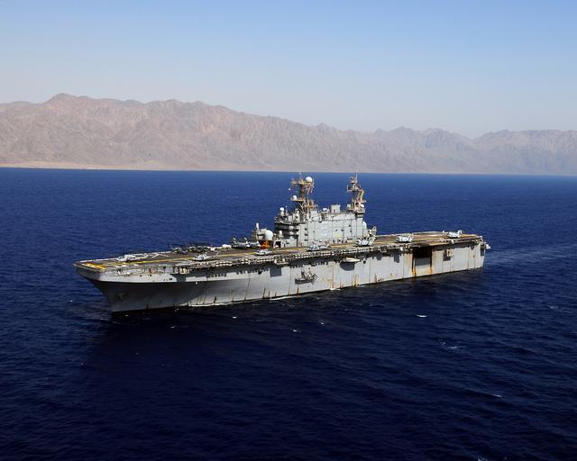 | Keywords: 080827-N-2183K-088.jpg RED SEA Aug 27 2008 The amphibious assault ship USS Peleliu LHA 5 conducts operations in the Red Sea Peleliu is deployed in the U S 5th Fleet area of responsibility supporting maritime security operations http //www navy mil/view_image asp id 63190 Navy NewsStand Photo ID 080827-N-2183K-088 jpg<br />http //www news navy mil/ Navy NewsStand Home 2008-08-27 U S Navy photo by Mass Communication Specialist 2nd Class Dustin L Kelling PD-USGov-Military-Navy General views of USS Peleliu LHA-5 |