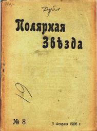 | Keywords: Полярная Звезда. №08. (1906) — Титульный лист.jpg Титульный лист жу нала «Поля ная Звезда» 8 1906 «Поля ная Звезда» еженедельный жу нал выходивший под ед П Ст уве с 15 декаб я 1905 г по 19 ма та 1906 г Всего вышло 14 номе ов 1906 http //xn--80aagr1bl7a net/index php md books to art id 4429 Редакто Пёт Бе нга дович Ст уве PD-RusEmpire Polyarnaya zvezda 1905 1906 Title pages uploaded by Steven Pavlov from various sources | ||||