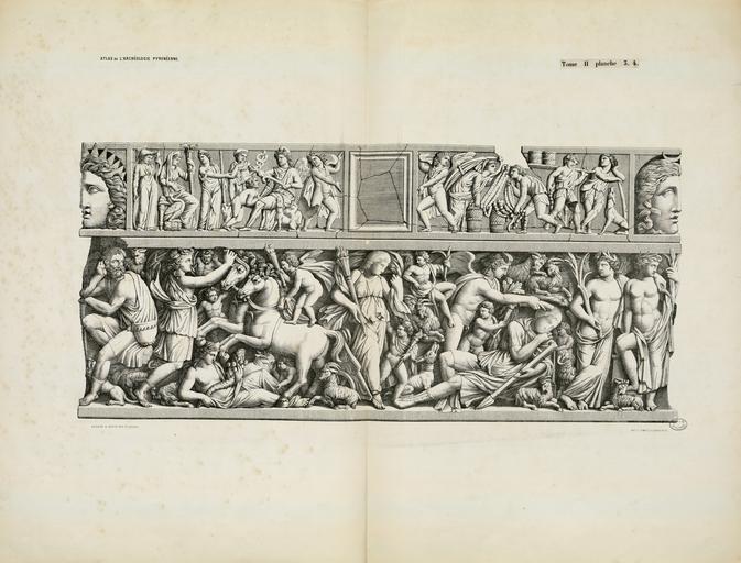 | Keywords: ^^091,Bas-relief de Sarcophage^^093, (Atlas des Monuments mythologiques t. II, pl. 3. 4.) - Fonds Ancely - B315556101 A DUMEGE 036.jpg Texte incomplet des dernières pages La plupart des lithographies ont été tirées par les ateliers de Raynaud frères d'après A Du Mège Quelques unes ont été dessinées et lithographiées par Charles Gall Bonnet E Binet Durand M Pomier P Lacour G Chariol Les planches sont numérotées mais plusieurs manquent sur les 49 annoncées pl 1 6 13 18 21 22 23 24 25 26 27 28 30 31 32 33 38 40 il semblent que ces planches n'aient jamais été publiées voir note p 9 du texte - Les 4 dernières planches sont extraites du tome II de l'Atlas de l'Archéologie Pyrénéenne Monuments mythologiques pl 1 à 6 Pièces jointes couvertures papier de différentes livraisons Ancely René 1876 - 1966 Possesseur fre public domain domaine public B315556101_A_DUMEGE_1_036 jpg image/jpeg 1 pl lithogr ; 64 cm Gall Charles 18 -18 Illustrateur Bonnet Illustrateur Durand Illustrateur Lacour P Illustrateur Chariol G Illustrateur Binet E Illustrateur http //numerique bibliotheque toulouse fr/collect/general/index/assoc//ark /74899/B315556101_A_DUMEGE_036 dir/B315556101_A_DUMEGE_1_036 jpg Bibliothèque municipale de Toulouse A-DUMEGE 28 Creator Alexandre Du Mège http //catalogues toulouse fr/web2/tramp2 exe/do_keyword_search/log_in setting_key BMT1 servers 1home query p000391 Carte du Royaume et du duché de Septimanie n° 2 Abbaye de la Grasse - Tolosa Vignette tirée du second livre de l'histoire manuscrite de la ville de Tolosa Archives de l'hotel de Ville 16e siècle - Dame Carcas Figure en pierre placée sur un Cippe en dehors de la Porte Narbonnaise 16e siècle n° 3 Ruines du Château de Beaucaire - Carcassonne murs anciens de la Cité t I n° 4 Fragment présumé du tombeau de Simon de Montfort - Bataille de Muret - Miracle de Fangeaux i e Fanjeaux t I n° 5 Portail de Maguelonne sic t I n° 7 Abbaye de Gellone ou de St Guilhem du désert t I n° 8 Cathédrale Ste Cécile d'Albi Grand escalier t I n° 9 Cathédrale Ste Cécile d'Albi Vue générale intérieure t I n° 10 Fresque de l'église Ste Cécile d'Alby Le cardinal Joannes Jofredus et ses deux frères - Croix d'Armagnac t I n° 11 Détail d'une des portes latérales de St Gilles - Façade de St Gilles t I n° 12 Croquis de l'une des mosaèiques découvertes par MM J Soulages et Escudier dans le lieu de Silva Agra Saint-Rustice à plus de vingt kilomètres de Toulouse t I n° 14 Partie des ruines de l'église St Etienne d'Agen - Ruines du Château de Nérac t I n° 15 Palais Tutèle d'après une gravure sur bois publiée à Bordeaux en 1565 t I n° 17 Monuments sépulchraux des Samatan descendants des premiers comtes de Comminges t I n° 19 Un des plus beaux vitraux de la cathédrale d'Auch dans la chapelle du Purgatoire t I t I n° 20 Voeu fait par le roi Charles VI dans la forêt de Bouconne Etant accompagné du duc de Touraine frère du roi du duc de Bourbon de Pierre de Navarre comte d'Evreux d'Henri de Bar de Philippe d'Artois comte d'Eu d'Olivier de Clisson connétable de France et d'Enguerrand sire de Couci D'après une étude de M Pomier t I n° 29 Entrée du Dauphin fils de Charles VII depuis Louis XI dans Toulouse en 1443 vignette calquée dans les archives de Toulouse t I n° 34 Entrée du Dauphin fils de François 1er dans Toulouse en 1533 calque d'une vignette des annales manuscrites de la ville t I n° 35 Entrée de la Reine de France femme de François 1er dans Toulouse en 1533 vignette calquée dans les archives de la ville t I n° 36 Entrée du roi Louis XIV dans Toulouse en 1659 calque d'une vignette conservée dans les archives de la ville t I n° 37 Rétablissement du Parlement à Toulouse en 1469 d'après la demande de Mr Lebrun Juge-Mage de cette ville t I n° 39 Bas-reliefs de l'obélisque de Port-Vendres La servitude abolie La marine relevée L'indépendance de l'Amérique La liberté du commerce t I n° 41 Cathédrale Saint Bertrand de Comminges boisieries du déambulatoire t I n° 46 Bas-reliefs du tombeau de St Fort dont Le pape Clément V office à l'église St Seurin en 1306 la seconde année de son pontificat ; Vue de la chapelle souterraine et du tombeau de St Fort à Bordeaux t I n° 47 Sceaux des comtes souverains de Toulouse Tripoli et Poitiers t I n° 48 Monuments sépulcraux des comtes souverains de Toulouse dont Chapelle sépulcrale des Comtes de Toulouse telle qu'elle existait en 1615 t I n° 49 Autels votifs Atlas des Monuments mythologiques t II pl 1 2 Bas-reliefs de Sarcophage Atlas des Monuments mythologiques t II pl 5 Objets décorés Atlas des Monuments mythologiques t II pl 6 vignette http //numerique bibliotheque toulouse fr/collect/general/index/assoc//ark /74899/B315556101_A_DUMEGE_036 dir/B315556101_A_DUMEGE_1_036_thumb jpeg between 1858 1862 Bas-relief de Sarcophage Atlas des Monuments mythologiques t II pl 3 4 B315556101_A_DUMEGE_036 lithography - print Women in art Sculptures Alexandre Du Mège Tombs Men in art Tombs in Midi-Pyrénées Marble |