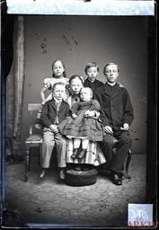 | Keywords: photo border Gårdmand på Eitrup Mark Rasmus Rasmussen Føns og Maren Uldalls børneflok fortograferet 1872. Rasmus 13 år, Sidsel Margrethe 12 år, Hans 9 år, Marie 6 år, Mads 5 år og Mette Kirstine 2 år. Bortset fra Hans, der døde som 21-årig, blev de alle gift og fik børn. Forældrene ses på billede 1690. Gårdmand på Eitrup Mark Rasmus Rasmussen Føns og Maren Uldalls børneflok fortograferet 1872. Rasmus 13 år, Sidsel Margrethe 12 år, Hans 9 år, Marie 6 år, Mads 5 år og Mette Kirstine 2 år. Bortset fra Hans, der døde som 21-årig, blev de alle gift og fik børn. Forældrene ses på billede 1690. |