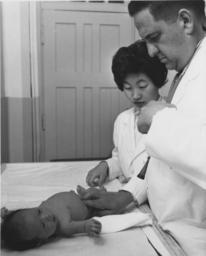 | Keywords: people blackandwhite monochrome indoor black and white 09-5058-75 Lieutenant Commander Robert G. Rizza, Medical Corps, U.S. Navy and Doctor Atsuko Kayano of Okayama examine a baby during the obstetrics-gynecology phase of the internship. [Pediatrics.][Children.][Training.][Hospitals.][Scene.] Yokosuka, Japan. 03/30/1962; XSC-19159-3-62; SRP/3/62/140/KLI; 09-5058-75 Lieutenant Commander Robert G. Rizza, Medical Corps, U.S. Navy and Doctor Atsuko Kayano of Okayama examine a baby during the obstetrics-gynecology phase of the internship. [Pediatrics.][Children.][Training.][Hospitals.][Scene.] Yokosuka, Japan. 03/30/1962; XSC-19159-3-62; SRP/3/62/140/KLI; |