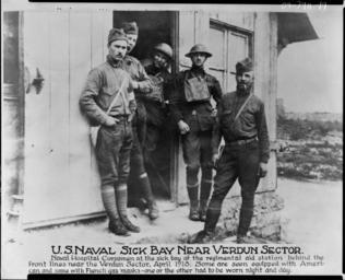 | Keywords: history blackandwhite people monochrome black and white 09-7911-19 "U.S. Naval Sick Bay Near Verdun Sector: Naval Hospital Corpsmen at the sick bay of the regimental aid station behind the front lines near the Verdun sector, April 1918. Some are seen equipped with American and some with French gas masks - one or the other had to be worn night and day." [Portraits.] [World War 1.] [Scene.] WWI Photos. 09-7911-19 "U.S. Naval Sick Bay Near Verdun Sector: Naval Hospital Corpsmen at the sick bay of the regimental aid station behind the front lines near the Verdun sector, April 1918. Some are seen equipped with American and some with French gas masks - one or the other had to be worn night and day." [Portraits.] [World War 1.] [Scene.] WWI Photos. |