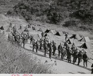 | Keywords: hospital corps hospitalcorps training outdoor 09-8046-038 All hospital corpsmen and dental technicians who train at Field Medical Service School, Camp Pendleton spend eight days and six nights in Windmill Canyon. The Canyon lies within the field training area assigned to the Field Medical Service School (FMSS). It is here that hospital corpsmen are afforded the first opportunity to practice their art in a setting designed to resemble the field environment of the Fleet Marine Forces. It is here that the total culmination of training and concentrated study finds practical application, with a unique blending of all that has been learned in the past with the expertise recently acquired at the Field Medical Service School. Field Medical Service School dates back to 07/01/1955, when it replaced Field Medical Training Battalion. The school has continued to train Navy medical personnel for duty with the Fleet Marine Forces since that time. FMSS is a unique command since it represents and of Marine Corps Base, Camp. [Soldiers.] [Military camps.] [Training.] [Scene.] Hospital Corps Training - Field Medical Service School and with the Marines. 11/27/1967; 5258112767; US Navy Medicine 12/1971;. 09-8046-038 All hospital corpsmen and dental technicians who train at Field Medical Service School, Camp Pendleton spend eight days and six nights in Windmill Canyon. The Canyon lies within the field training area assigned to the Field Medical Service School (FMSS). It is here that hospital corpsmen are afforded the first opportunity to practice their art in a setting designed to resemble the field environment of the Fleet Marine Forces. It is here that the total culmination of training and concentrated study finds practical application, with a unique blending of all that has been learned in the past with the expertise recently acquired at the Field Medical Service School. Field Medical Service School dates back to 07/01/1955, when it replaced Field Medical Training Battalion. The school has continued to train Navy medical personnel for duty with the Fleet Marine Forces since that time. FMSS is a unique command since it represents and of Marine Corps Base, Camp. [Soldiers.] [Military camps.] [Training.] [Scene.] Hospital Corps Training - Field Medical Service School and with the Marines. 11/27/1967; 5258112767; US Navy Medicine 12/1971;. |