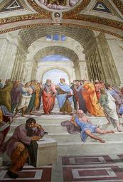 | Keywords: 0 Chambre de Raphaël - École d'Athènes - Musées du Vatican (2).JPG Artwork Creator Raffaello Sanzio L'École d'Athènes The School of Athens La escuela de Atenas Détail de la fresque monumentale réalisée par Raphaël pour le Palais du Vatican à Rome Detail of the monumental fresco done by Raphael for Vatican Palace to Rome Detalle del fresco monumental hecha por Rafael de Palacio Vaticano de Roma Particolare dell'affresco realizzato da Raphael per Palazzo Vaticano a Roma 1509 - 1511 Fresco size cm 770 at base Institution Stanza della Segnatura Palazzi Pontifici Vatican object history credit line accession number User Jean-Pol GRANDMONT 2011 User Jean-Pol GRANDMONT/Credit PD-old-100 <gallery> File 0 Chambre de Raphaël - École d'Athènes - Musées du Vatican 1 JPG File 0 Chambre de Raphaël - École d'Athènes - Musées du Vatican 3 JPG File 0 Chambre de Raphaël - École d'Athènes - Musées du Vatican 4 JPG </gallery> The School of Athens 1509 paintings Uploaded by Jean-Pol GRANDMONT |