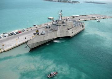 | Keywords: nas key west naskeywest littoral combat ship littoralcombatship uss independence ussindependence lcs 2 lcs2 naval air station key west navalairstationkeywest mole pier molepier testing evaluation u.s. navy usnavy aerial key west keywest fla. fla united states unitedstates 100329-N-1481K-298: KEY WEST, Fla. (March 29, 2010) The Navy's newest littoral combat ship USS Independence (LCS 2) arrives at Mole Pier at Naval Air Station Key West. Independence is on the way to Norfolk, Va., for commencement of initial testing and evaluation of the aluminum vessel before sailing to its homeport in San Diego. Independence is a fast, agile, mission-focused ship specifically designed to defeat "anti-access" threats in shallow, coastal water regions, including surface craft, diesel submarines and mines. (U.S. Navy photo by Naval Air Crewman 2nd Class Nicholas Kontodiakos/Released) 100329-N-1481K-298: KEY WEST, Fla. (March 29, 2010) The Navy's newest littoral combat ship USS Independence (LCS 2) arrives at Mole Pier at Naval Air Station Key West. Independence is on the way to Norfolk, Va., for commencement of initial testing and evaluation of the aluminum vessel before sailing to its homeport in San Diego. Independence is a fast, agile, mission-focused ship specifically designed to defeat "anti-access" threats in shallow, coastal water regions, including surface craft, diesel submarines and mines. (U.S. Navy photo by Naval Air Crewman 2nd Class Nicholas Kontodiakos/Released) |