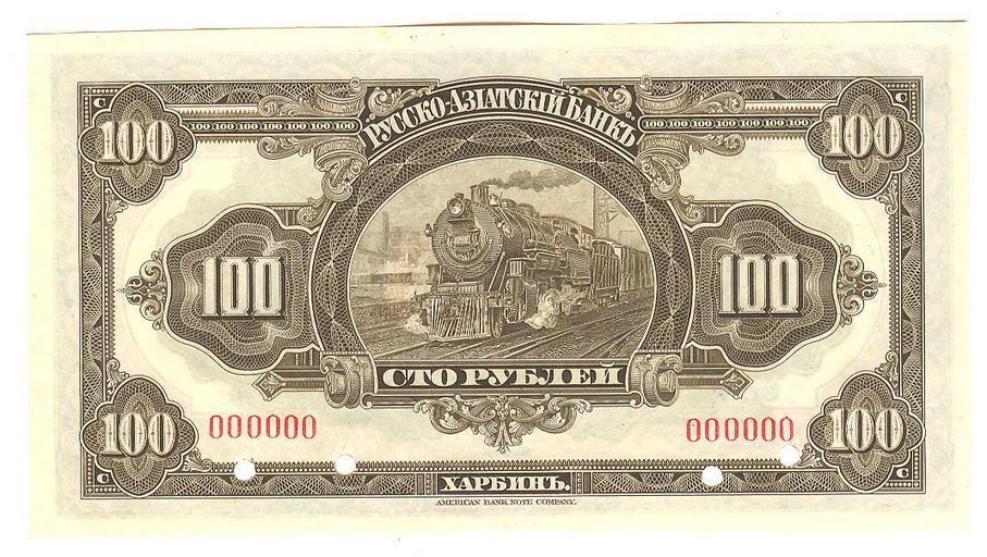Keywords: 100 рублей Русско-Азиатский банк ABNC av.jpg en 100 убль Русско-Азиатский банк ABNC av jpg own Dvergar Banknotes of Russian-Asian Bank Banknotes with a face value of 100 Steam locomotives on banknotes