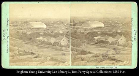 | Keywords: 100 MSS P 24 B1 F6.jpg depicted people depicted place Salt Lake City Utah other date ~ 1870 Albumen Stereograph- 3 9/16 x 7 1/8 in Institution Harold B Lee Library https //sites lib byu edu/sc/ L Tom Perry Special Collections object history exhibition history credit line accession number http //cdm15999 contentdm oclc org 80/cdm/ref/collection/Savage/id/662 PD-100 PD-1923 Harold B Lee Library partnership Images from the Harold B Lee Library HBLL C R Savage collection Uploaded with pattypan Salt Lake Tabernacle Stereo images |