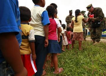 | Keywords: usn; children; panama; balloon animals usnchildrenpanamaballoonanimals silico creek silicocreek punta de pena puntadepena panama uss iwo jima (lhd-7) ussiwojimalhd7 u.s. marines usmarines operation continuing promise 2010 operationcontinuingpromise2010 spmagtf outdoor U.S. Navy Lt. Cmdr. John B. Sears, right, a chaplain with Special Purpose Marine Air-Ground Task Force Continuing Promise 2010 (CP10), hands out balloon animals to children in Silico Creek, Panama, Oct. 1, 2010. U.S. Service members and civilians provided medical, dental, veterinary and engineering assistance to residents of the community during CP10. (U.S. Marine Corps photo by Sgt. Samuel R. Beyers/Released) U.S. Navy Lt. Cmdr. John B. Sears, right, a chaplain with Special Purpose Marine Air-Ground Task Force Continuing Promise 2010 (CP10), hands out balloon animals to children in Silico Creek, Panama, Oct. 1, 2010. U.S. Service members and civilians provided medical, dental, veterinary and engineering assistance to residents of the community during CP10. (U.S. Marine Corps photo by Sgt. Samuel R. Beyers/Released) |