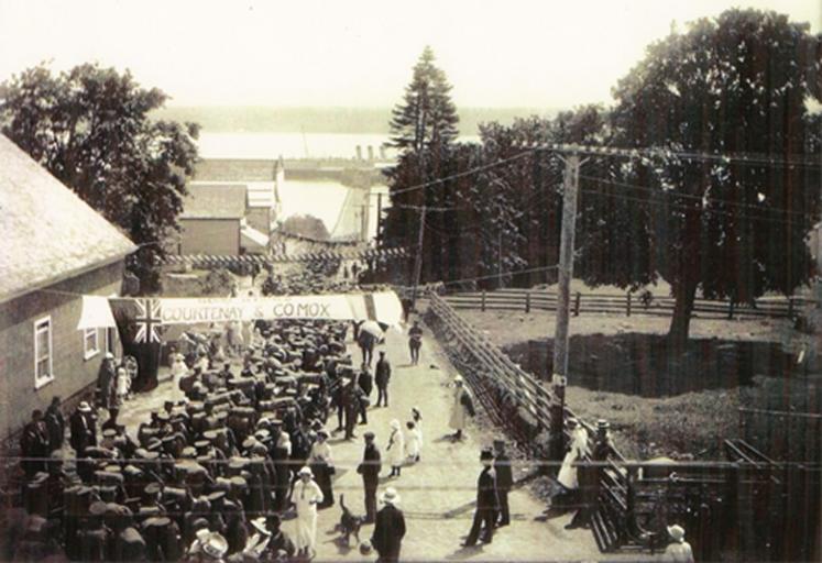 | Keywords: 102wharf.jpg en Soldiers of the 102nd Regiment of the Canadian Expeditionary Force march down Wharf Road in Comox British Columbia Canada on 10 June 1916 to embark on the SS Princess Charlotte in background the first part of their journey to the trenches of the Great War The 102nd Regiment was composed of men from across British Columbia who had been trained at a camp on the Goose Spit in Comox during the winter of 1915-1916 Comox Archives Museum Society Creator Unknown 1916-06-10 49 40 21 2 N 124 55 33 5 W PD-old Comox British Columbia 1916 in British Columbia Canada in World War I in 1916 June 1916 in Canada |