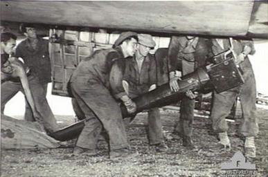 | Keywords: 105mm howitzer unloaded near Buna-Gona front.jpg 105mm M3A1 howitzer used in the Battle for Buna-Gona is unloaded through the bomb bay doors of the Boeing B17 Flying Fortress used to transport it New Guinea from Australia The aircraft also brought spare parts a tractor and ammunition and the gun crew November 1942 013744 Clifford Bottomley PD-Australia Uploaded with UploadWizard New Guinea campaign Australia in World War II World War II in 1942 | ||||