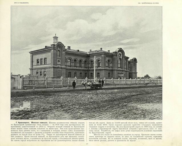 | Keywords: 107 Красноярск Женская гимназия.jpg en «Great Path - Views of Siberia and Great Siberian Railway» book 1899 ru Альбом «Великий путь Виды Сиби и и Великой сиби ской железной до оги» 1899 1899 flickr photos by I R Tomaskiewicz comments by V A I-v Custom license marker 2014 04 08 PD-RusEmpire PD-old Great Path - Views of Siberia and Great Siberian Railway Uploaded with UploadWizard | ||||