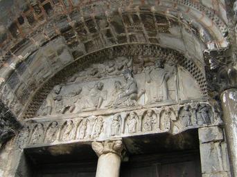 | Keywords: 109 St-Bertrand-de-Comminges.JPG Tympanum of the portal of Notre-Dame Cathedral in Saint-Bertrand-de-Comminges Haute-Garonne Midi-Pyrénées France Adoration of the magi St-Bertrand-de-Comminges catedral de Santa María Tympan du portail de la cathédrale Notre-Dame de Saint-Bertrand-de-Comminges Haute-Garonne Midi-Pyrénées France Adoration des mages ca 1100 Low relief Bas-relief Cathédrale Notre-Dame de Saint-Bertrand-de-Comminges object history exhibition history credit line accession number artwork license photo date B25es own photo license Portal of the Cathédrale Notre-Dame de Saint-Bertrand-de-Comminges Romanesque tympanums in France Saint-Bertrand Reliefs of the Adoration of the Magi in France |
