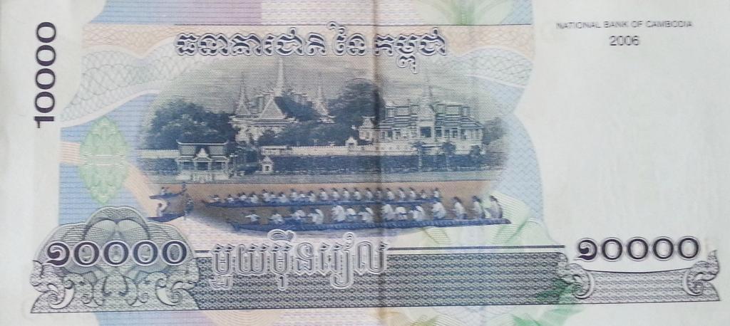| Keywords: 10 000 riels reverse.jpg The back part of the 10 000 riels note depicting the Boat Racing Festival in front of the Royal Palace ααααα ααΆαα ααααααα ααααΆαααααΆα αΒ α‘α α α α αΒ ααααααα αΆααα·ααΈαααααΆααααΌα αα