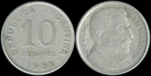 | Keywords: 10 centavos - Peso Moneda Nacional - Argentina - 1951.png es Moneda de diez centavos de 1951 Argentine 10 centavos 1/100 of a peso Argentine coin Argentine Central Bank photograph by Turkmenistan 1951 Coin PD-AR-Anonymous <br/>Photograph Coins of Argentina 1951 coins |