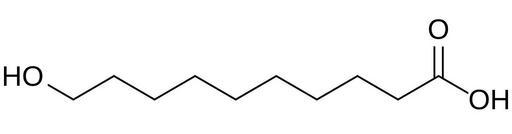 Keywords: 10-hydroxydecanoic acid.svg Chemical structure of 10-hydroxydecanoic acid 10-hydroxycapric acid Own 12 30 18 June 2014 UTC Ed Edgar181 Hydroxy acids Saturated fatty acids