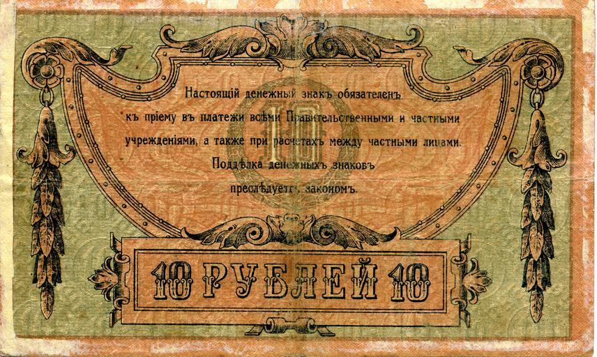 Keywords: 10 Roubles cossacks 1918.jpg en Russian Don banknote 10 rubles 1918 year ru Банкнота Донской области достоинством 10 ублей об азца 1918 года scanned note from own personal collection П авительство Донской области/Ростовская конто а Госбанка 1918 1918 currency Banknotes of Don 1918 Banknotes with a face value of 10 1918 in Russia |