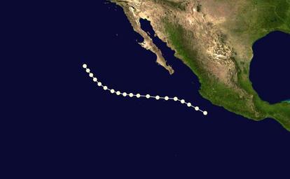 | Keywords: 10E 1956 track.png Track map of Hurricane Ten of the 1956 Pacific hurricane season The points show the location of the storm at 6-hour intervals The color represents the storm's maximum sustained wind speeds as classified in the Saffir-Simpson Hurricane Scale see below and the shape of the data points represent the nature of the storm according to the legend below User Nilfanion/Tc/T The background image is from NASA Tracking data is from http //www aoml noaa gov/hrd/hurdat/tracks1949to2010_epa html HURDAT 2013-06-06 Supportstorm Tropical cyclone tracks Pacific hurricane tracks Pacific hurricanes in the 1950s |