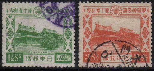 Keywords: 10th Anniv. of Meiji Shrine stamp set.JPG ja 明治神宮鎮座10周年を記念して昭和5年に発行された記念切手 personal stamp collection 大日 国 信 1930-11-01 PD-Japan Stamps of Japan 1930